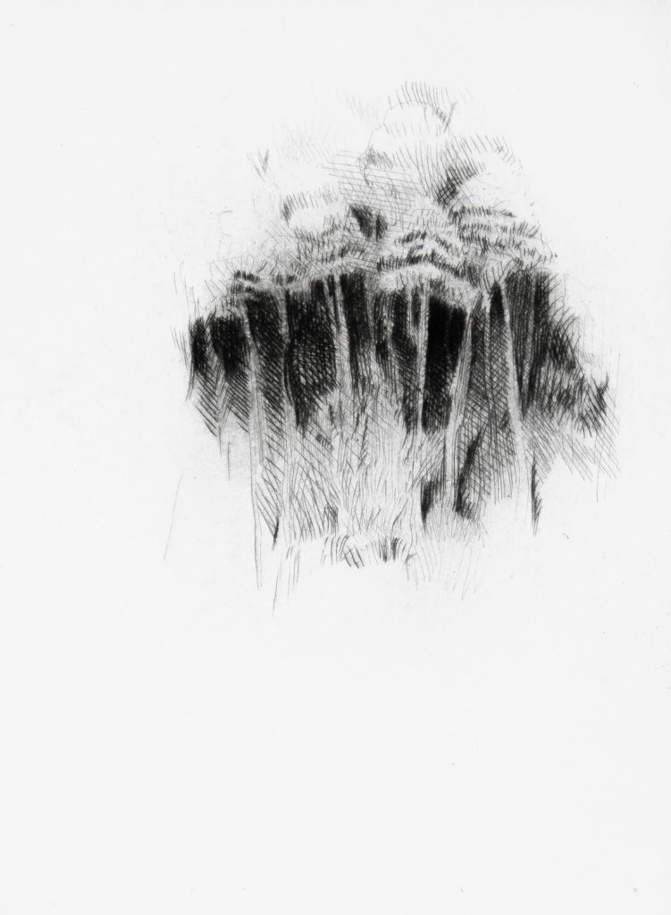 « Les pins », pointe sèche, 15 x 11cm, 2025