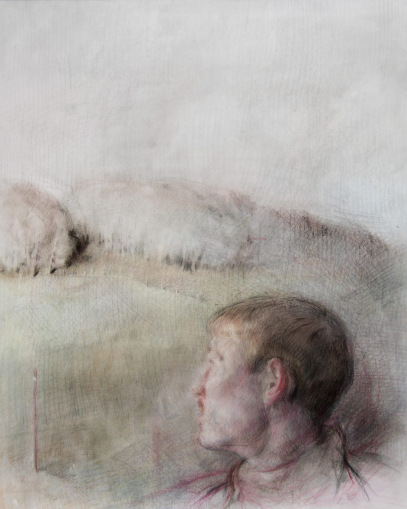 « Maël au pays des merveilles », Pastel sur papier calque, 37,5x50cm, 2024