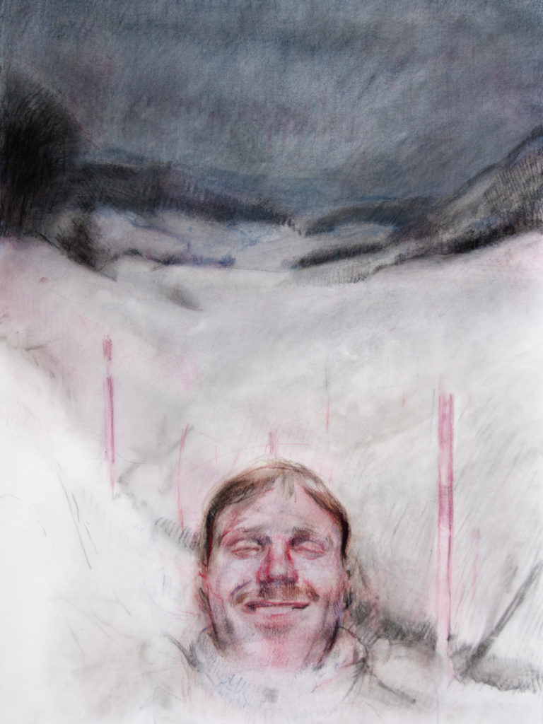 « Phil au pays des merveilles », Pastel sur papier calque, 37,5x50cm, 2024